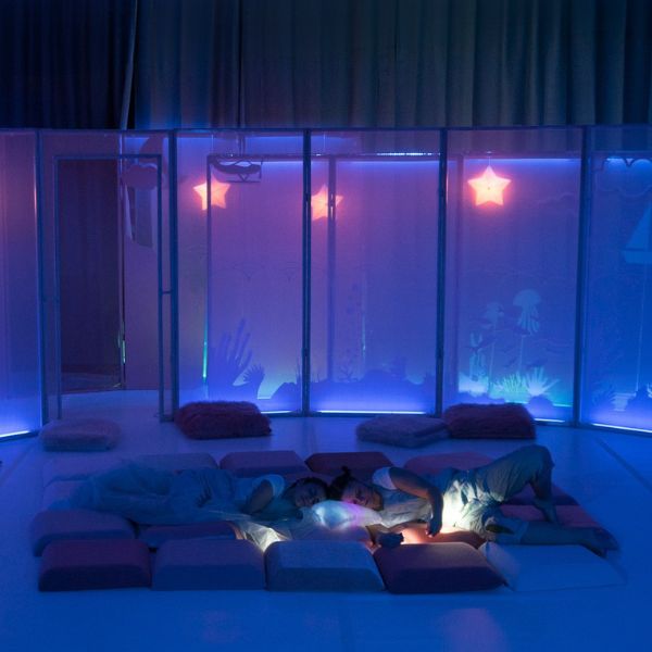 Până să adoarmă, copiii străbat lungul drum al somnului către visare. Noaptea este lungă și multe umbre luminate se arată în împărăția pernuțelor pufoase. Spre a prinde somnul cel mai dulce, lumea mărilor albastre li se alătură la joacă. Dintr-o pânză mare, albă, iau formă o meduză fermecată și un pește bulbucat. Joaca lor printre steluțe ar mai continua, dacă n-ar fi o pernuță care să-i poarte pe copii în lumea viselor cu bucurii.